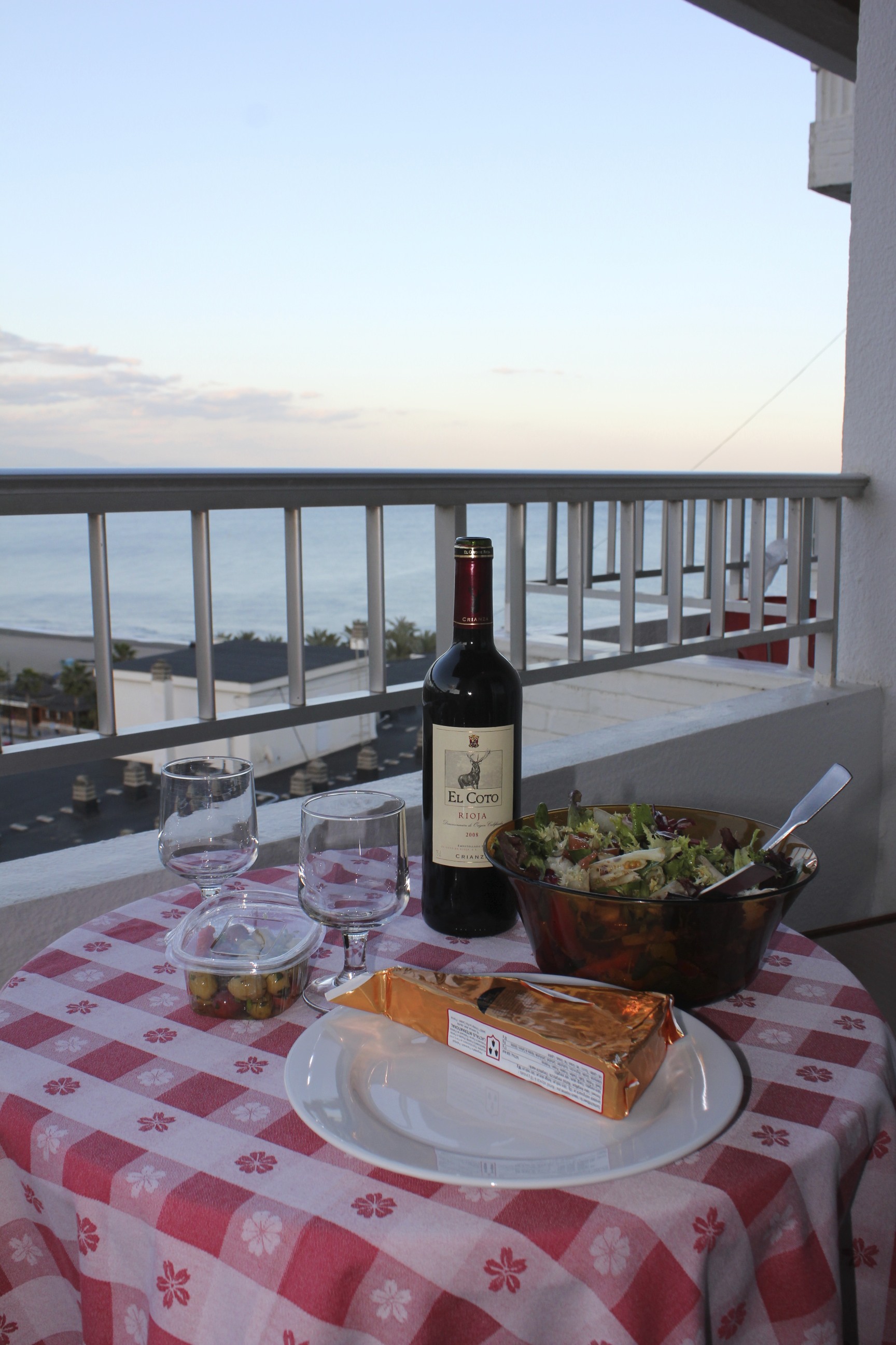 Pour la première soirée, avec la fatigue du voyage et le décalage horaire, nous avons soupé sur notre balcon – en profitant de la vue sur la Méditerranée.