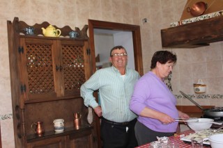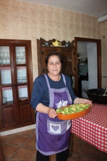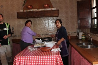 Nous sommes finalement arrivés au pâté de maisons de notre destination pour le lunch: la maison de Maria (imaginez-vous un gros autobus rempli de touristes à la retraite, arrêté dans une pente, où la route est juste assez large pour un véhicule). Nous sommes descendus de l’autobus et avons marcher dans un sentier de terre pour se rendre jusqu’à la maison de Maria.