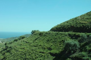 Question de se remettre de notre exercice matinal, on a pris la route pour Torrox. Cette route en forme de serpentin à flan de montagne, nous amène de la mer au sommet de la montagne en passant par toutes sortes d’émotions (ravin, merveilleux paysages, troupeaux de chèvres, petits pâtés de maisons, etc.).