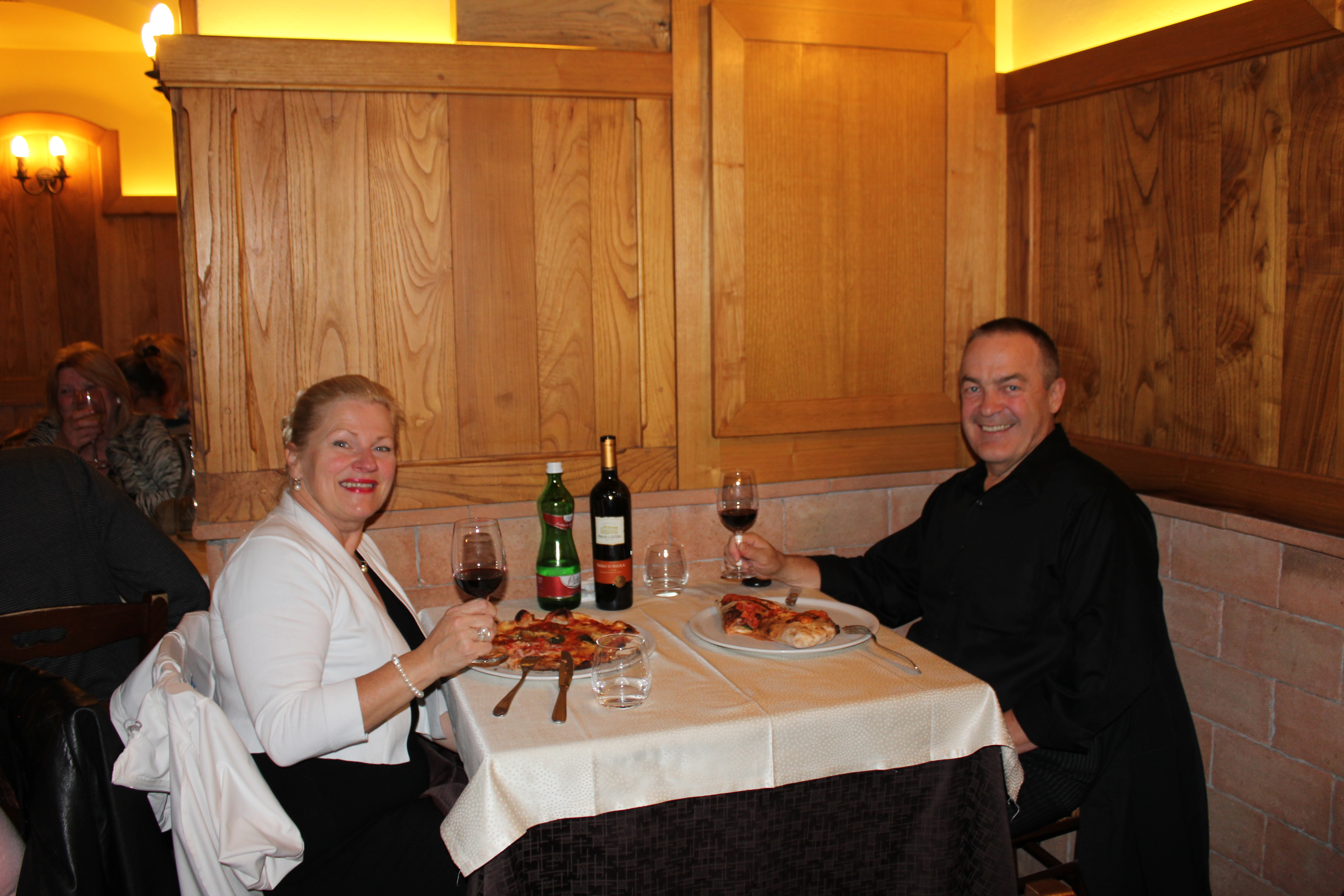 Nous avons pris un souper en tête-à-tête dans un petit restaurant du secteur touristique. Nous y avons dégusté d’excellents antipasti (légumes grillés sur feu de bois accompagnés de boules de mozzarella frais et d’huile d’olive), une excellente pizza Margarita, un calzone con carne digne des gros appétits, le tout accompagné d’un délicieux vin de la région de la Sicile.